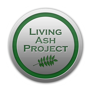 Another characteristic sign of the die back fungus - the top part of this tree has died, although the lower part looks OK. This happens because the fungus enters through the leaves in the crown of the tree.